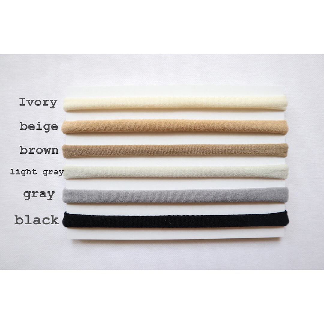 バンド部分は新生児の赤ちゃんにも安心してご利用いただけるよう、厳選してご用意しています。伸縮性のあるサークルタイプのとても柔らかいナイロンのヘアバンドですので、ニューボーンの新生児でも安心して使用いただけます。