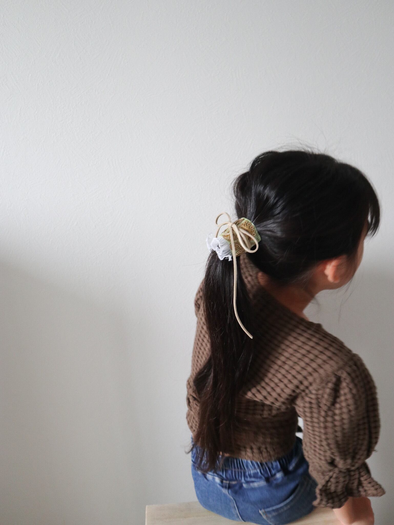 インド刺繍のリボンを使ったポニーフックです。